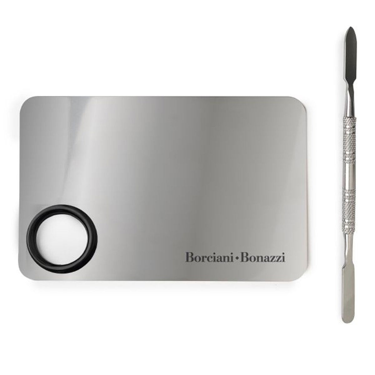 The palette, made of resistant steel, guarantees a smooth and easy-to-clean surface, while the spatula allows you to mix colors with precision, pick up pigments or spread textured pastes in a controlled way, avoiding waste and keeping the work surface tidy.